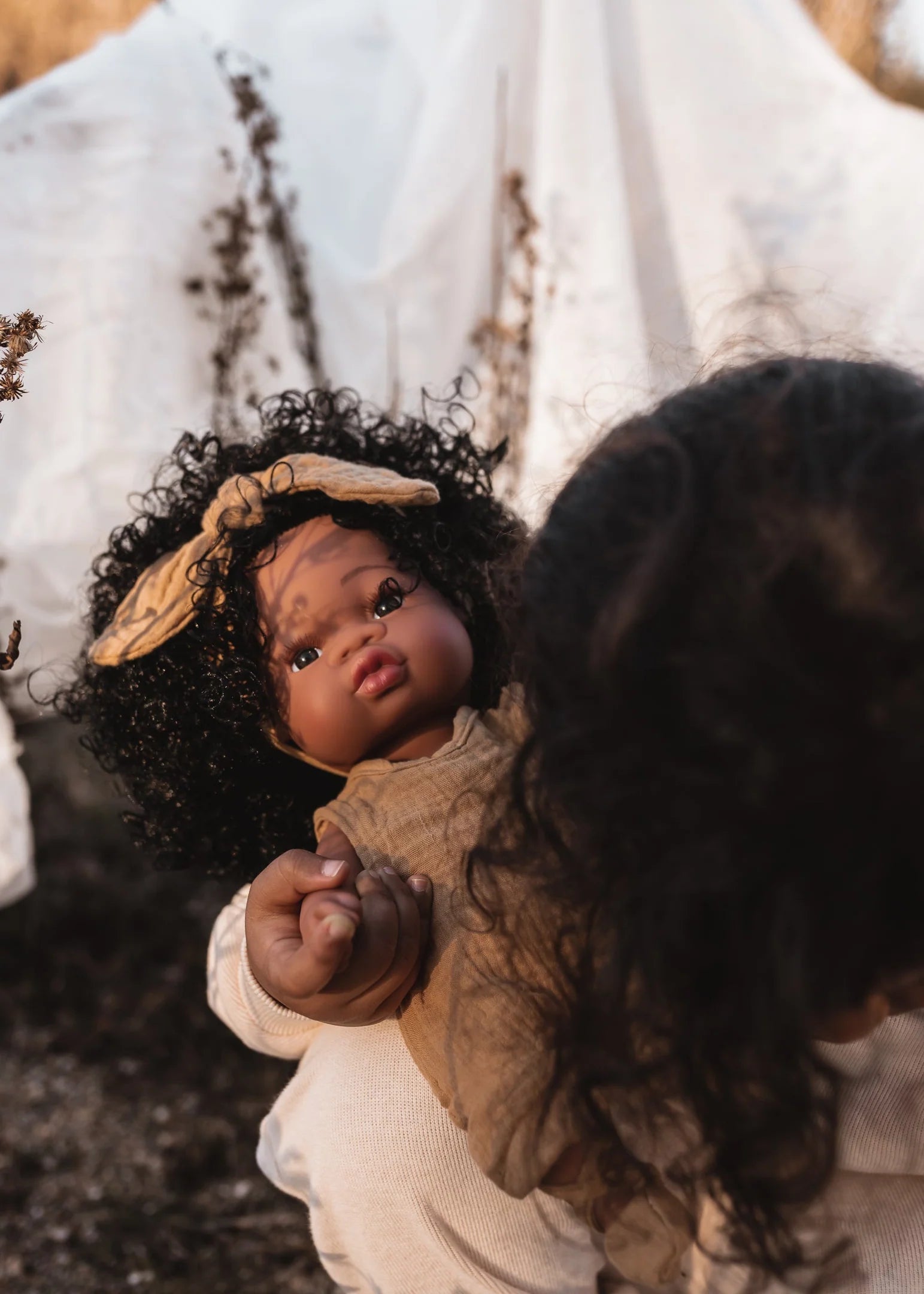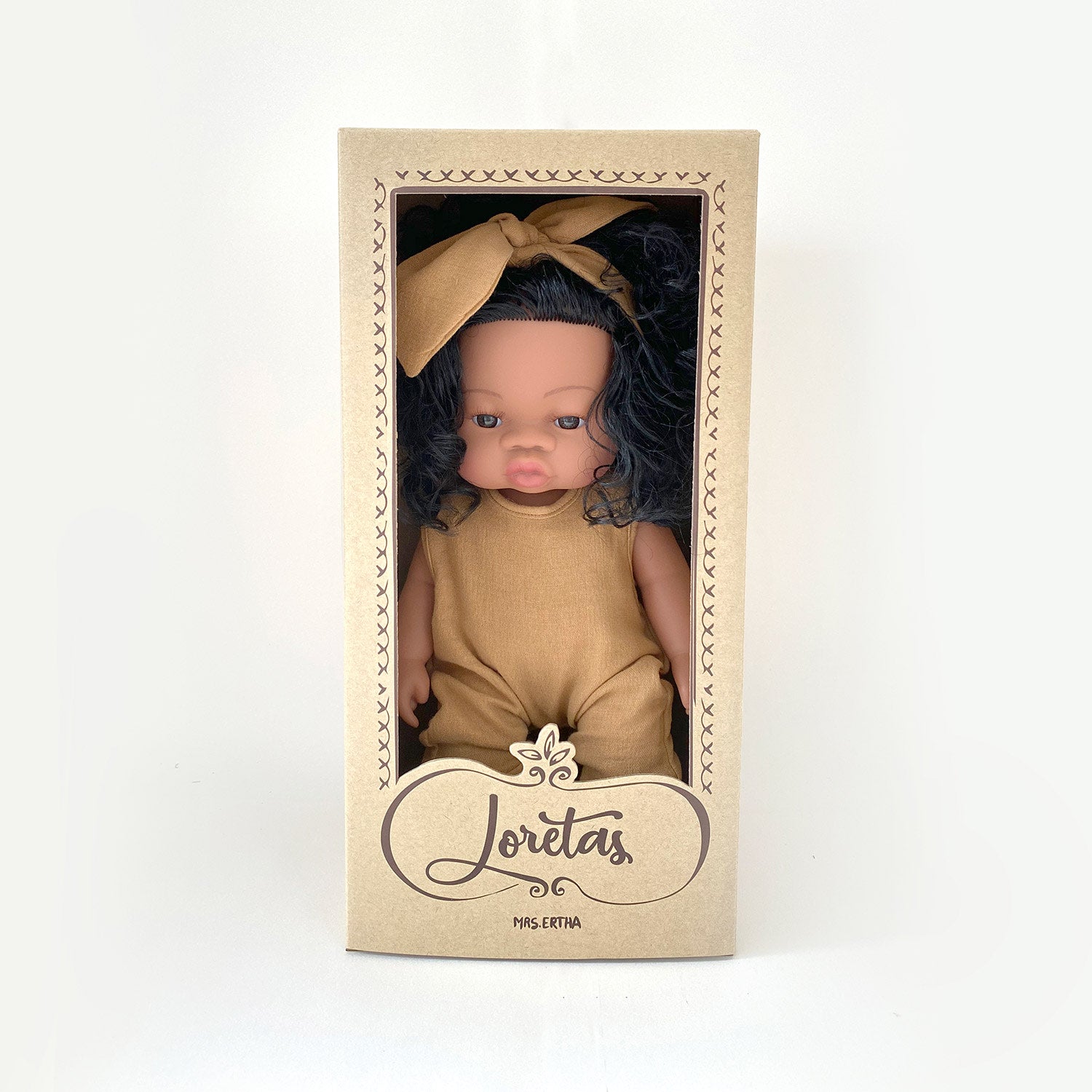 Kiekviena Loreta lėlė turi medvilninius apatinius, plaukų juostelę, kombinezoną, rankų darbo medvilninius batukus.